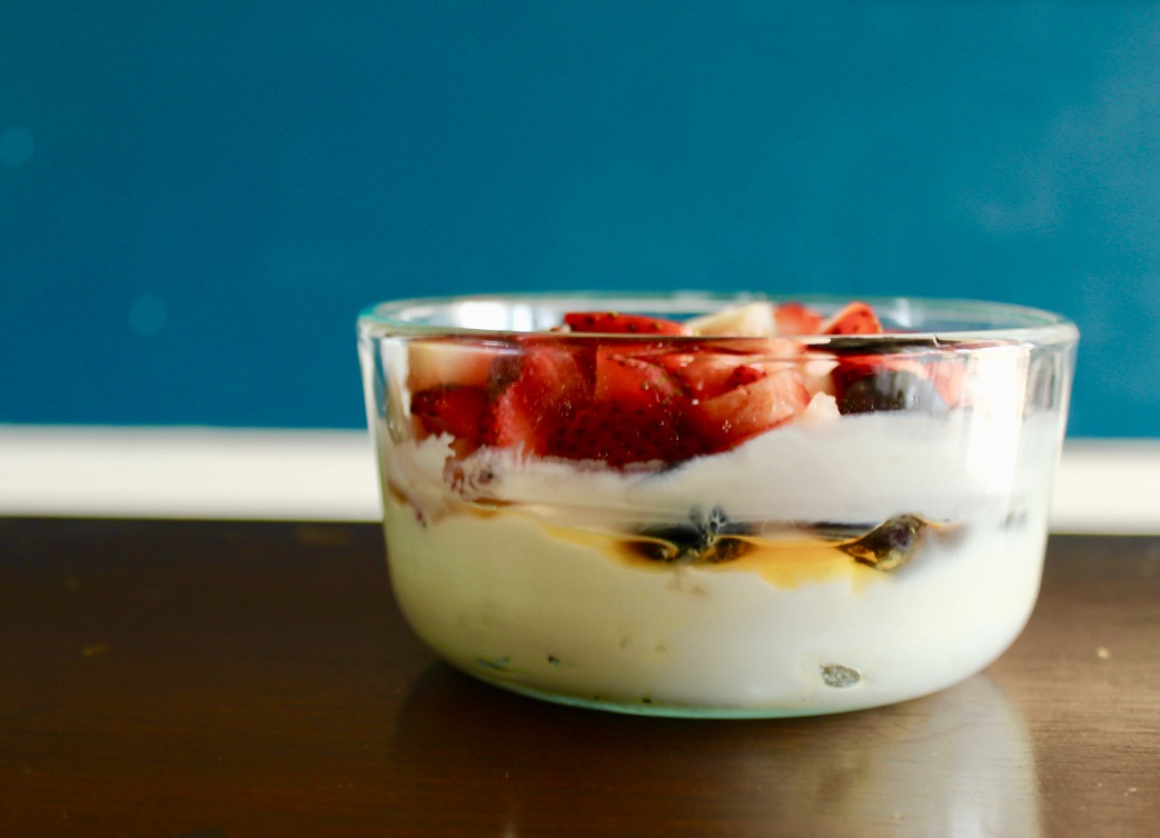 Now I love desserts and sweets, so I knew I needed to add something that would sweeten up my meals throughout the day. So I decided on some plain greek yogurt (mixed with collagen power) an assortment of berries, topped with honey. Not only is this a great mid morning snack, but its also fantastic for post-workout recovery. It satisfies my sugar cravings and packs in some protein!