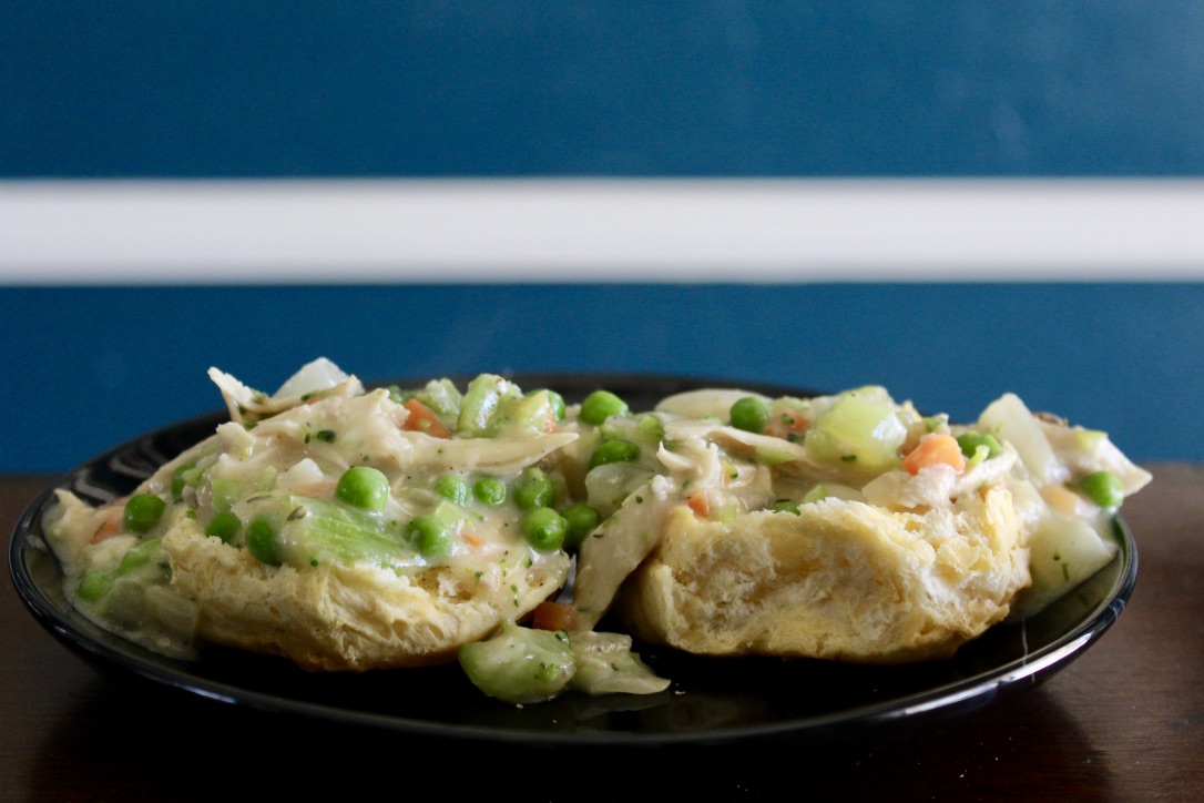Lastly, with snow on the ground and cold nights, I wanted to do a comfort food… I also really wanted biscuits and gravy. So here is the compromise: a chicken pot pie “soup” (I put the quotes because it doesn’t really have the consistency of a soup, but works just the same) over biscuits. No I didn’t make the biscuits but maybe one week I will try!