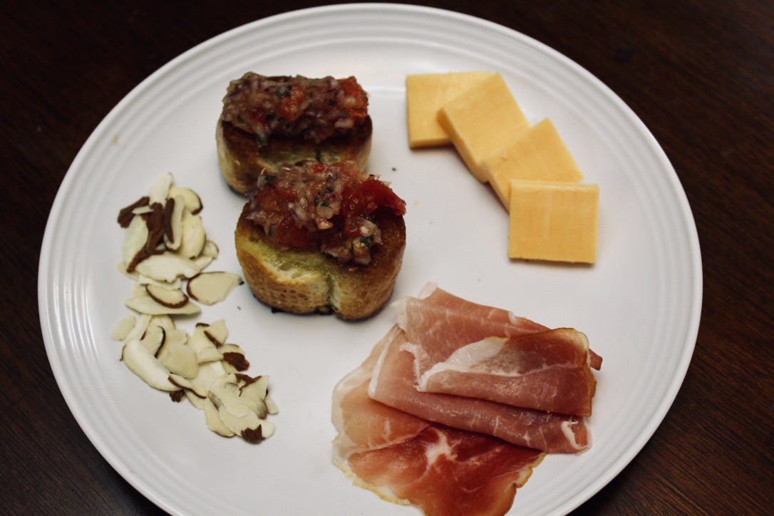 Last week I realized that I didn’t have any good snacks for the afternoon. I get hungry in the afternoon and then go looking for candy or granola bars and end up in a sugar coma. So this week I made myself a little spread for every day packed full of flavor and protein. It’s quite simple to put together too each afternoon and I feel so fancy eating it!
