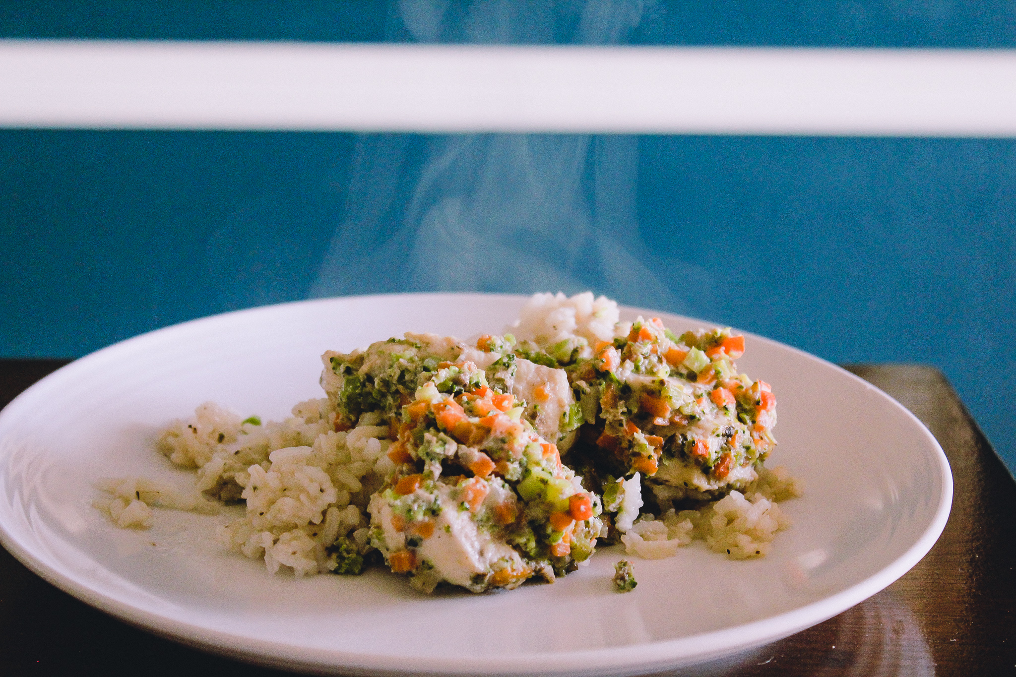 This meal is a comfort classic for me, even though this time around I didn’t make it for myself. It’s a really simple recipe! mix some Minute rice with cream of mushroom soup in a glass dish, cut up the chicken and cook it in a skillet with the riced veggies (here I used frozen riced broccoli and carrots and then chopped up some more mushrooms). Add seasonings to both parts of the dish. When the chicken starts to look like its cooked, but still a little pink, transfer the skillet portion of the meal into the glass dish with the rice, cover it in foil, put it in the oven and 45 minutes later you’ll have a full meal! My mom used to make this for me almost monthly (without the riced veggies, just a side of veggies) because it’s my favorite meal ever!
