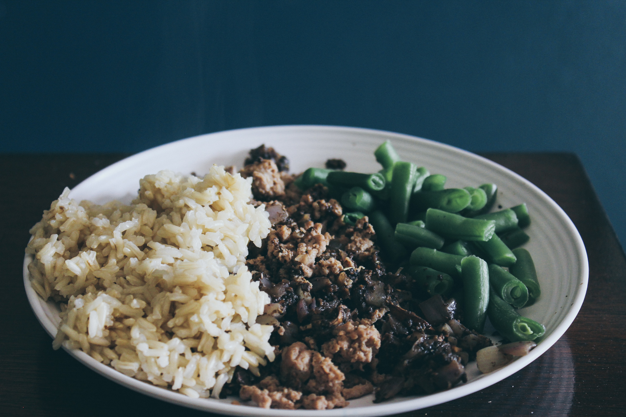 - Meal 5: Rice with Ground Turkey, Mushrooms, Onions and Green Beans