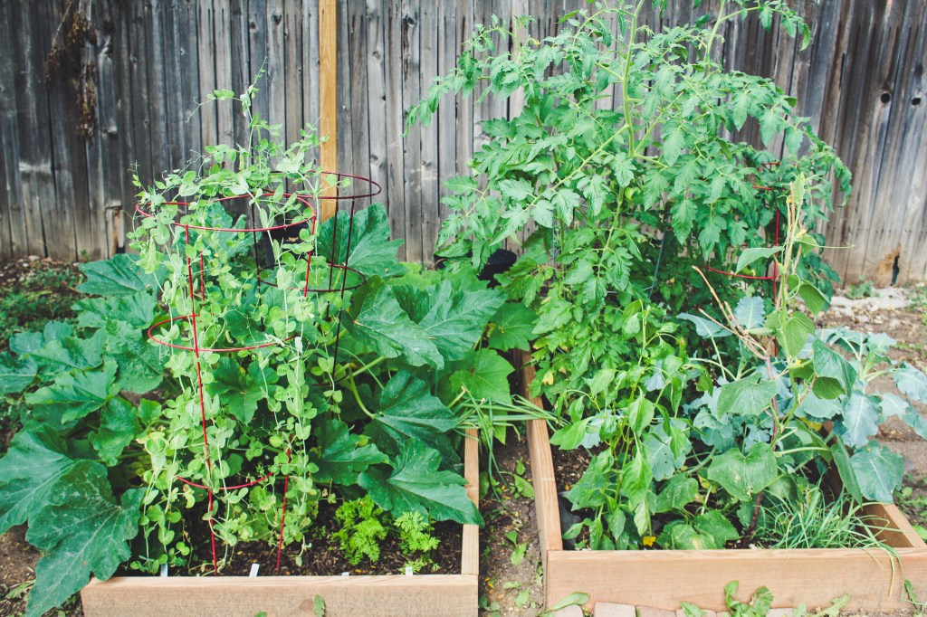 The photo above on the left was the start of my garden. Some of these plants were store bought and the others started out as seedlings that I tended to all spring. The photo on the left was taken about two weeks ago… I think I overestimated how big these plants would actually get. Everything seemed to explode this summer (thank you rain!).