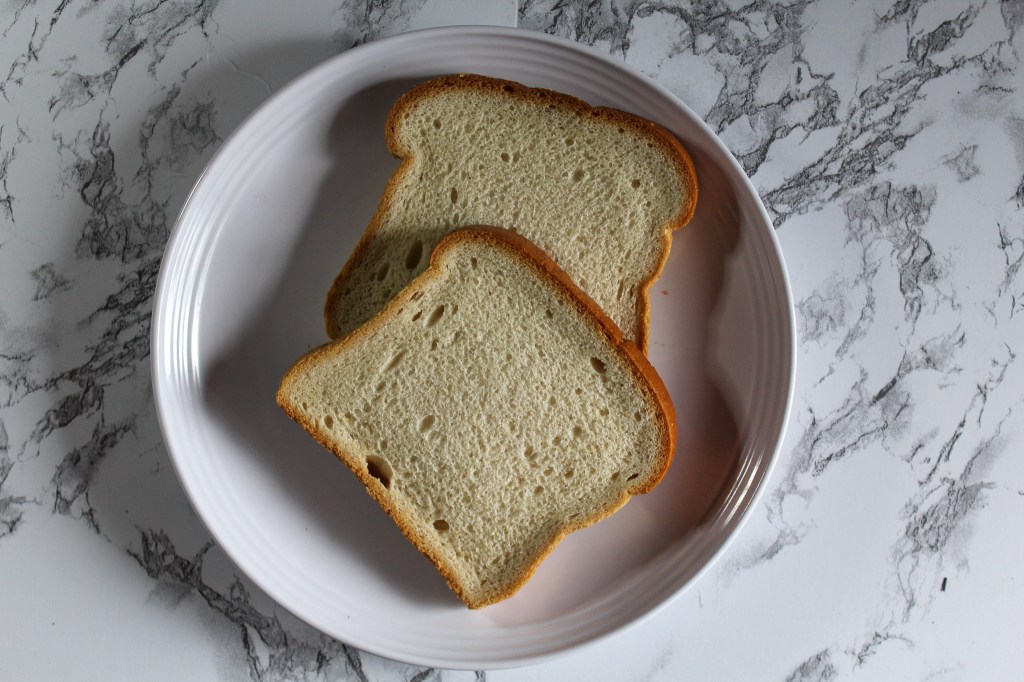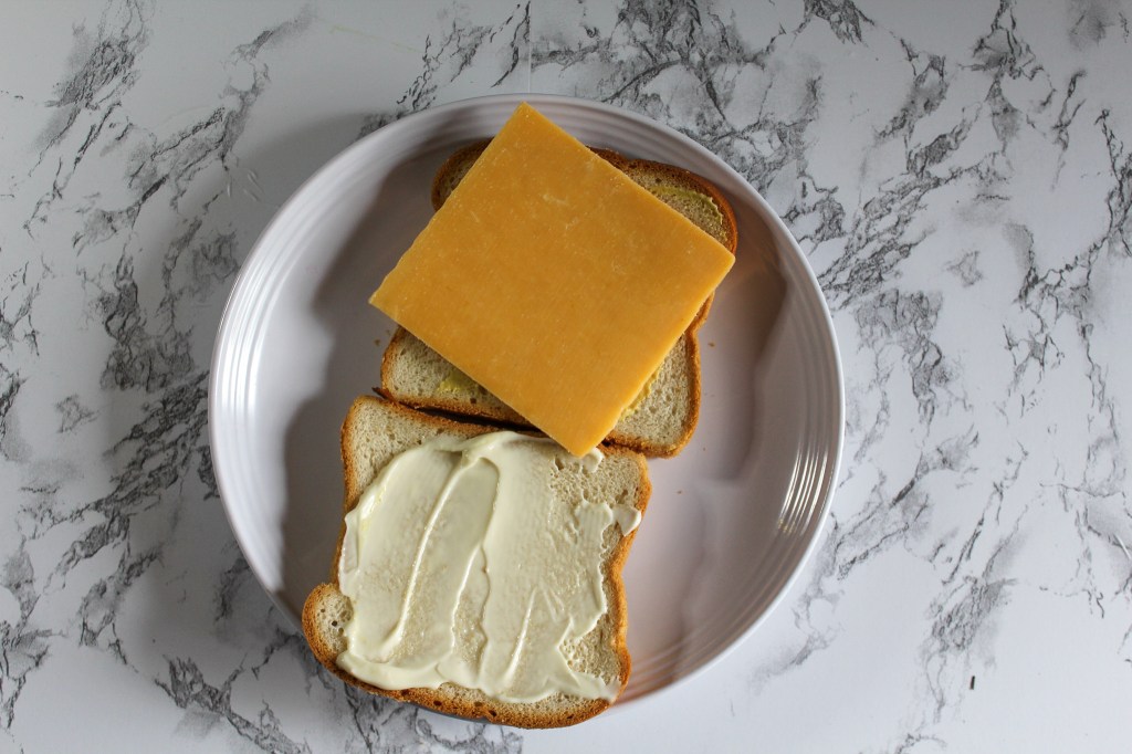 Step Two: Grab your bread, smear mustard on one piece and mayo on the other.