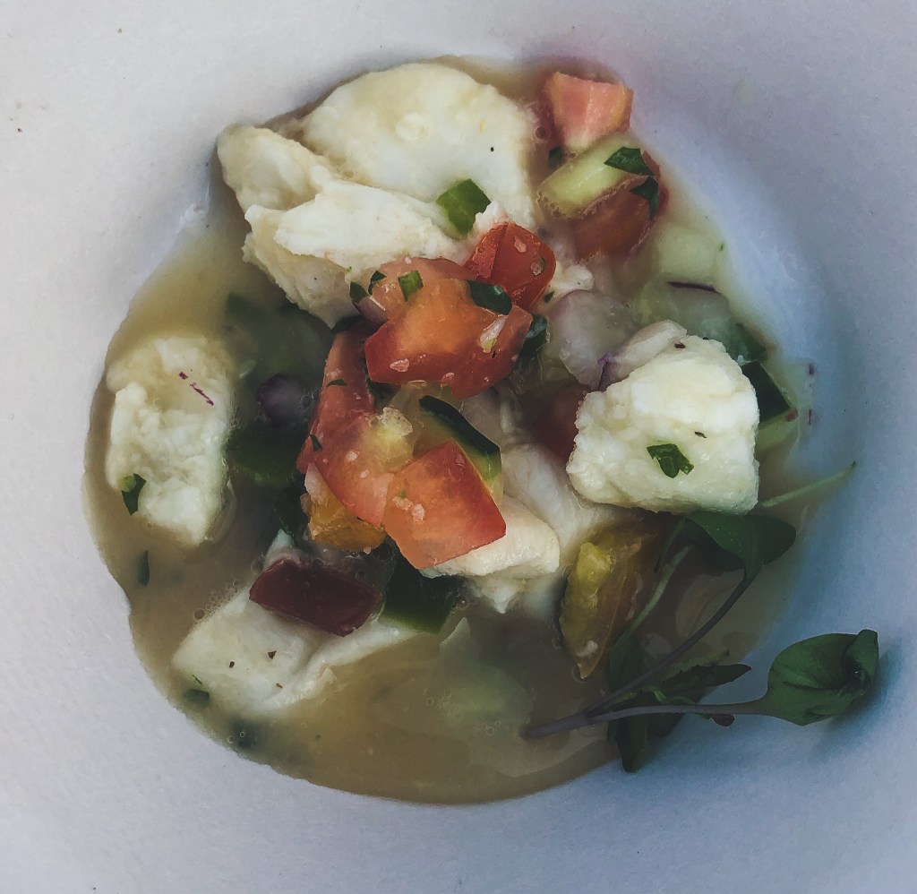 Worth it. Anyways, first up (below) was a Halibut CucumberCeviche with Yuzu Agua Chile. This dish was created by Dana Rodriguez, a Denver chef at Work & Class and Super Mega Bien. I love a good ceviche and this was superb and looked so pretty!