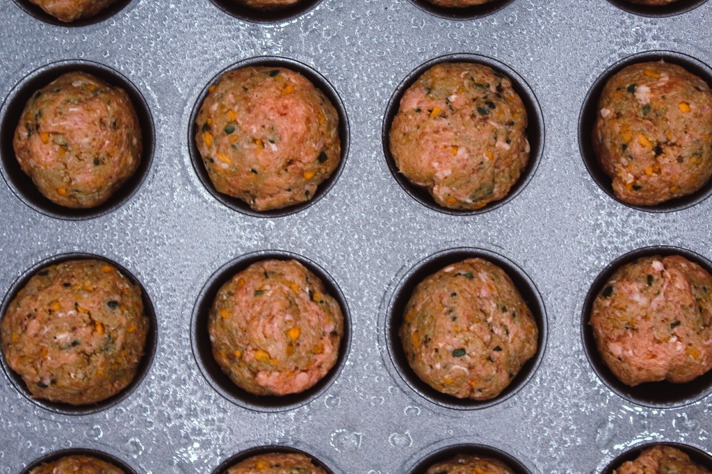 Fifth Step: Spray a pan down with your fav cooking spray. I prefer to use a mini cupcake pan for my meatballs, but a regular cookie sheet with foil on it works too!