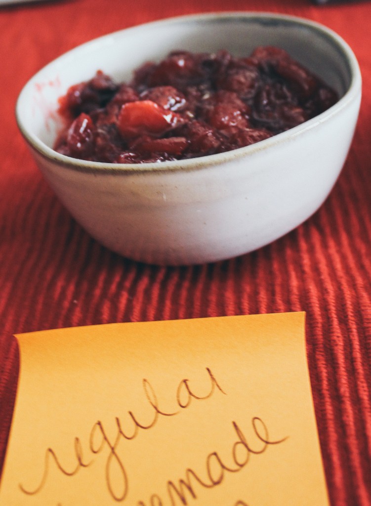 First up, a pretty simple regular homemade cranberry sauce. Ingredients: orange juice, sugar, cranberries, water and orange zest. I’m not actually sure if orange juice is pretty normal in a cranberry sauce but it sure did taste delicious. I served slightly warm and the comments were positive all around.