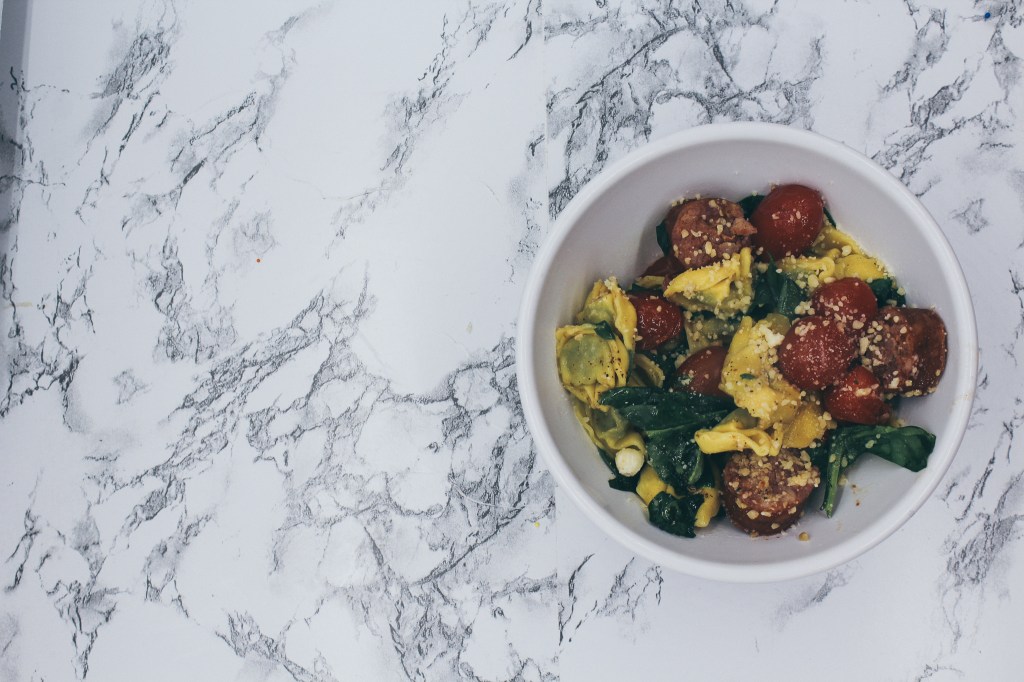 Speaking of happy! I made this lovely spinach tortellini dish. I’ve been really drawn to have some nice colors in my food lately. Deep greens and bright reds are not only fun to photograph but they taste good.