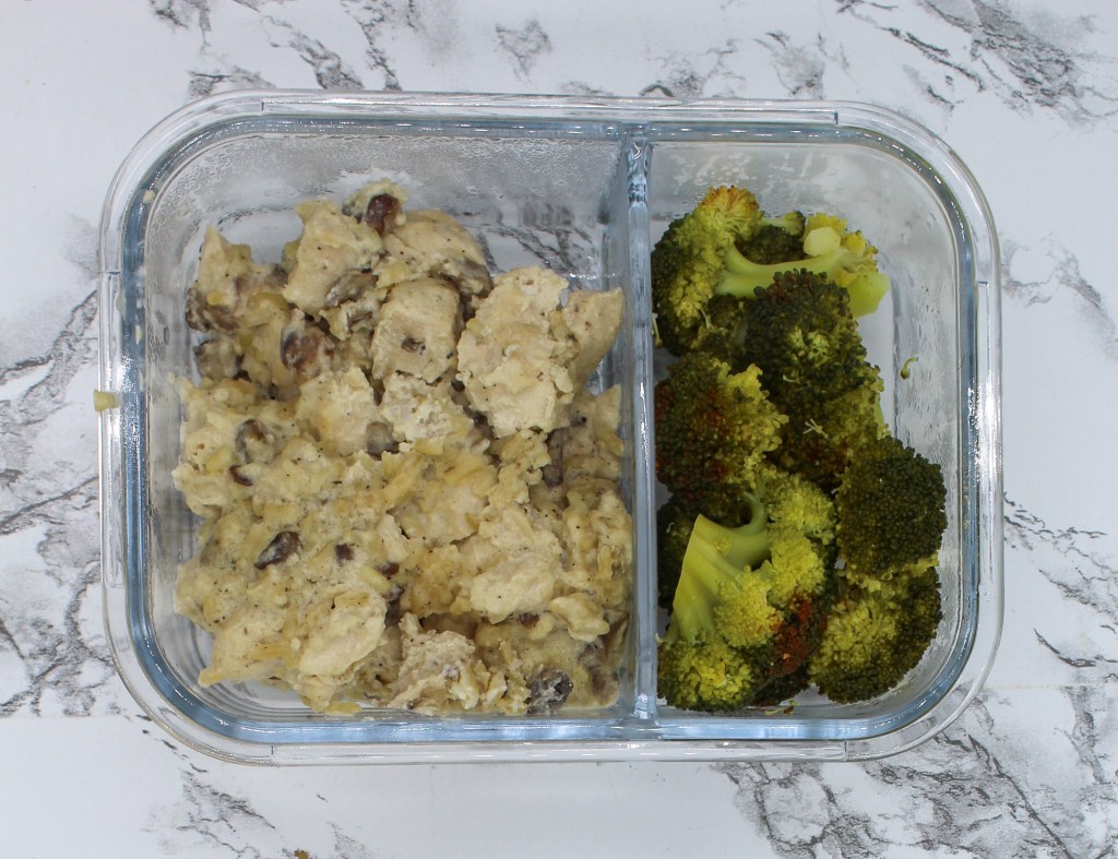 Last up is lunch: Mushroom Chicken Rice Bake and broccoli. This is a variation of a dish my mom used to make in my childhood. It was one of my favorite dishes and one that I crave when I need comfort food. And it’s a dish that I will be blogging the recipe to in about two weeks so be on the lookout!