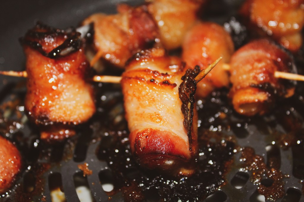 Step 2: Roll each piece of bacon into a little “rose” (see below for reference). You can either fold the pieces in half and roll or cut the pieces in half if they are too long.