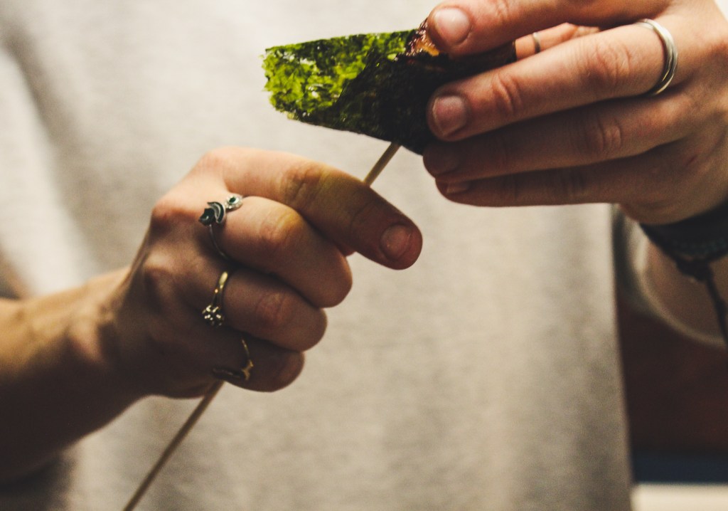 Step 7: Let the roses cool a little and grab your seaweed (kale or tissue paper) and skewers.