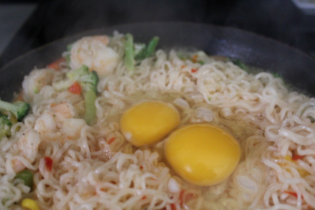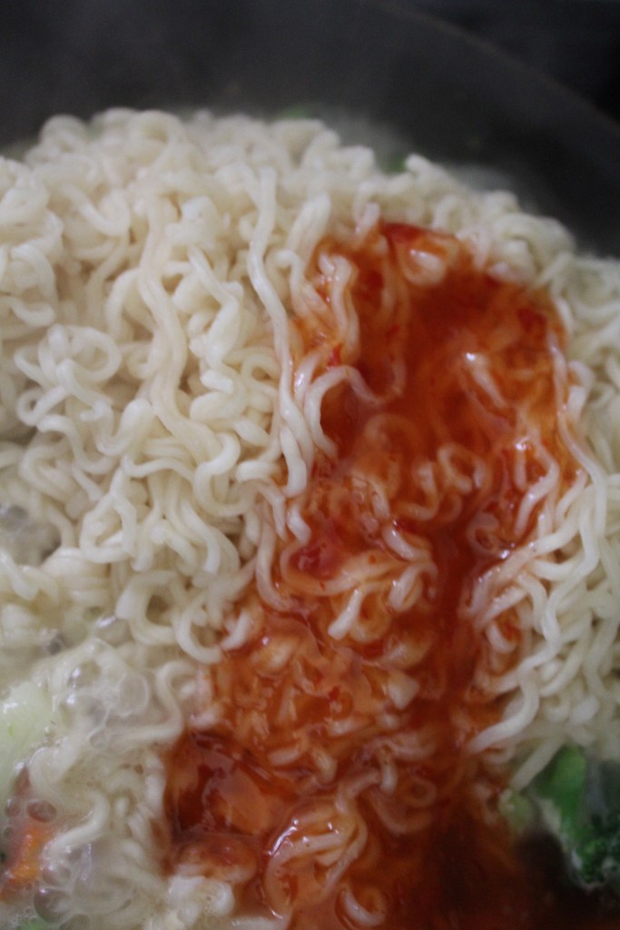 Step 1: Cook them noodles. You know boil some water, insert in noodles till the block of noodles softens up to your liking. It’s really easy.
