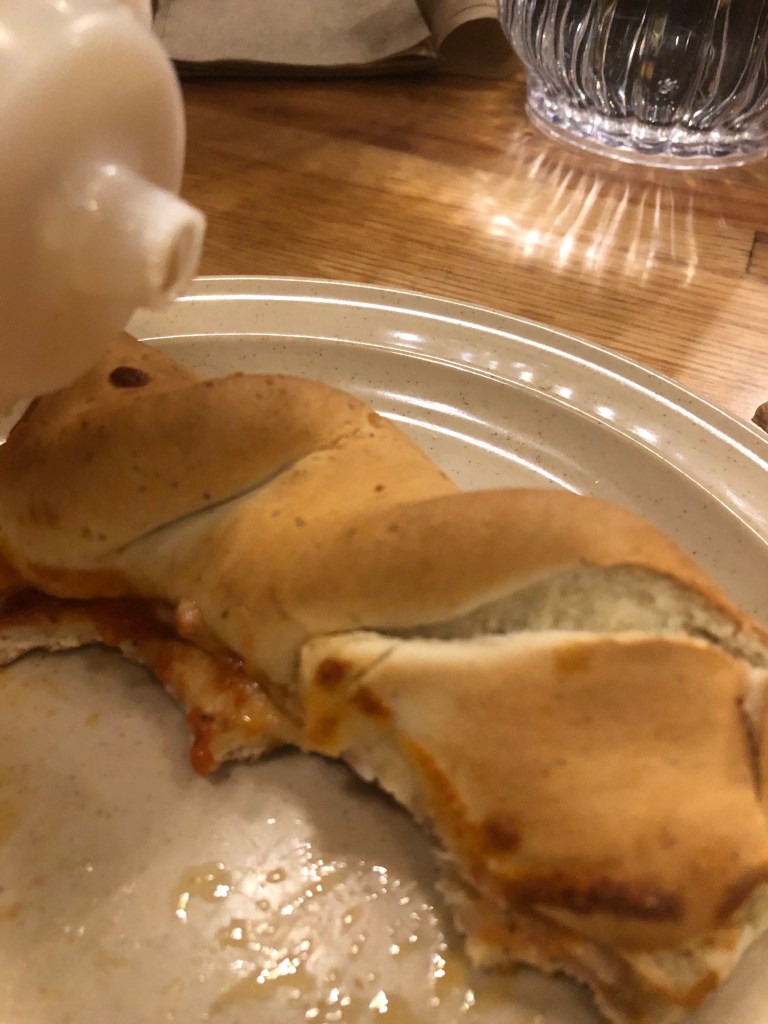 The next thing that makes a mountain pie is the crust. Every table is stocked with some honey. Once you eat all of the pizza parts, you then drizzle some honey onto the carefully braided crust and eat it up! You’ll be happy you did! And if you have some room for dessert, grab one of these giant cookies and enjoy!