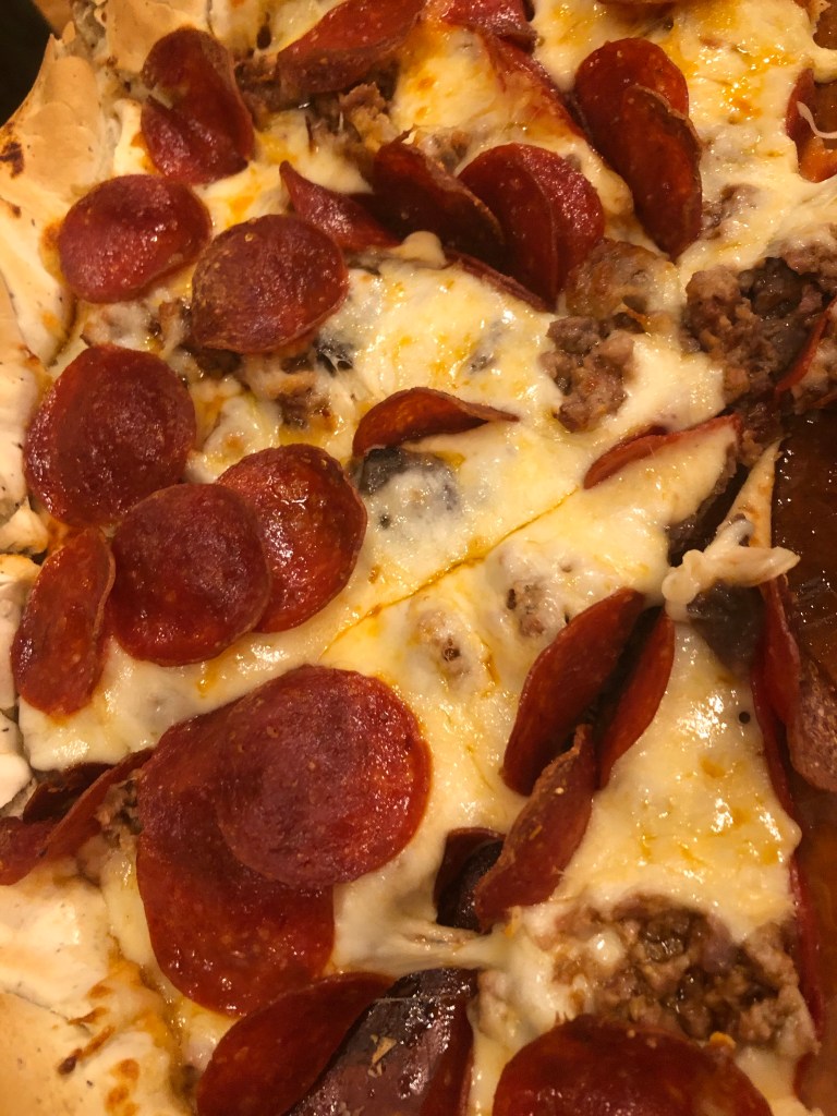 Suze can’t even handle these pizzas form the size to that cheese pull!