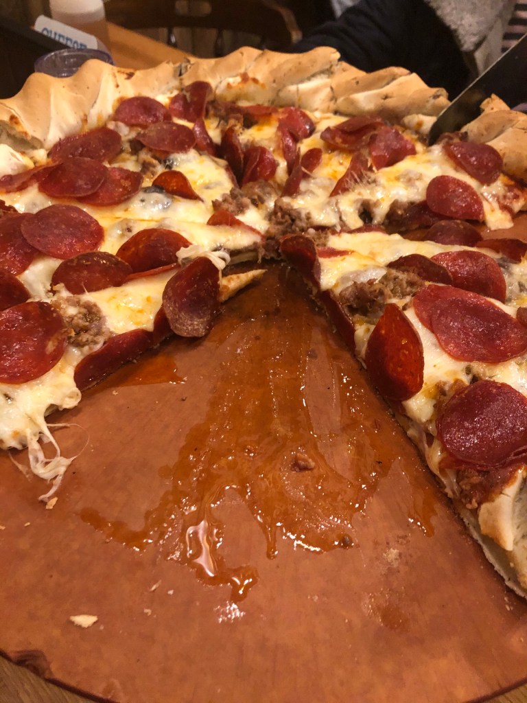 What is BeauJo’s known for? Its Mountain pie or Colorado Style Pizza and a mountain town vibed restaurant that is undeniably unique! I mean look you literally get drinks in mason jars. How cute is that?